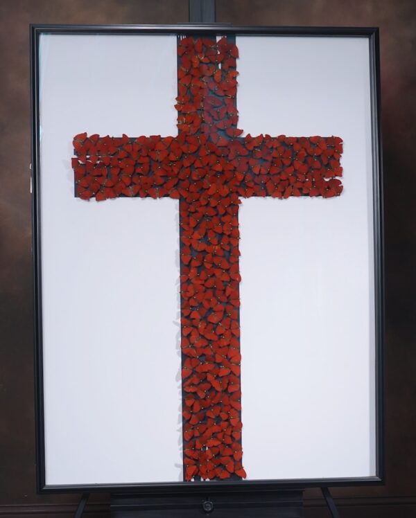 Hope. Belief. Faith. Made of over 400 real butterflies individually pinned, this art piece is here to remind you of all the good in life. Of all that you can achieve. Of all that you can dream about. The only thing left for you to do is to take off… And fly high. The red butterflies used in this piece come from west Africa and they are the only red butterfly in the world.